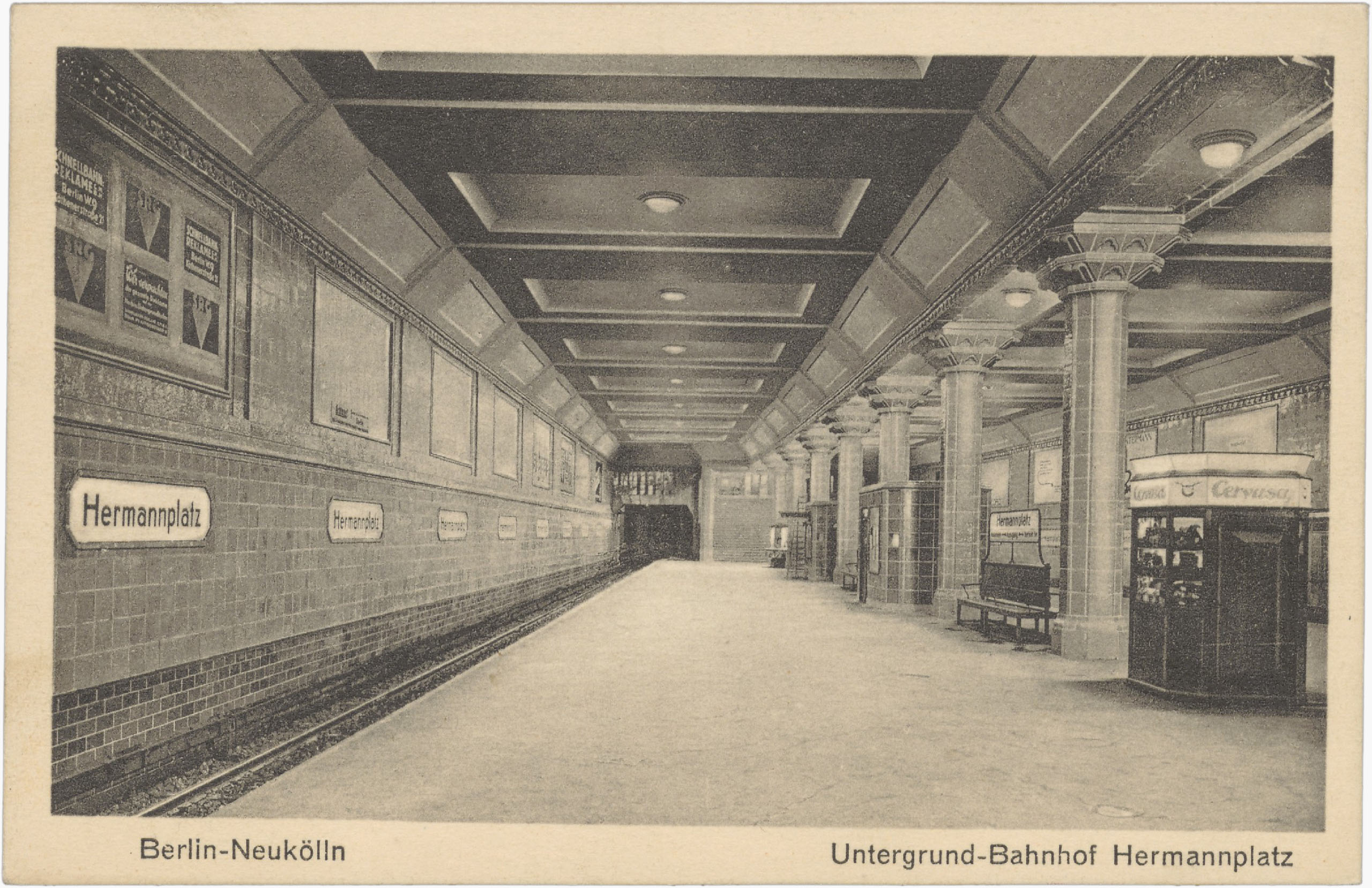 In der Ansichtskartensammlung von Peter Plewka finden sich einige Motive, die die städtebauliche Modernisierung des Hermannplatzes ober- und unterirdisch darstellen. Es fällt auf, dass die abgebildeten Motive eine imposante Größe und Weitläufigkeit vermitteln, die im Kontrast zu den engen Mietskasernen des 19. Jahrhunderts der umliegenden Quartiere standen, in denen vorwiegend Arbeiter*innen lebten.