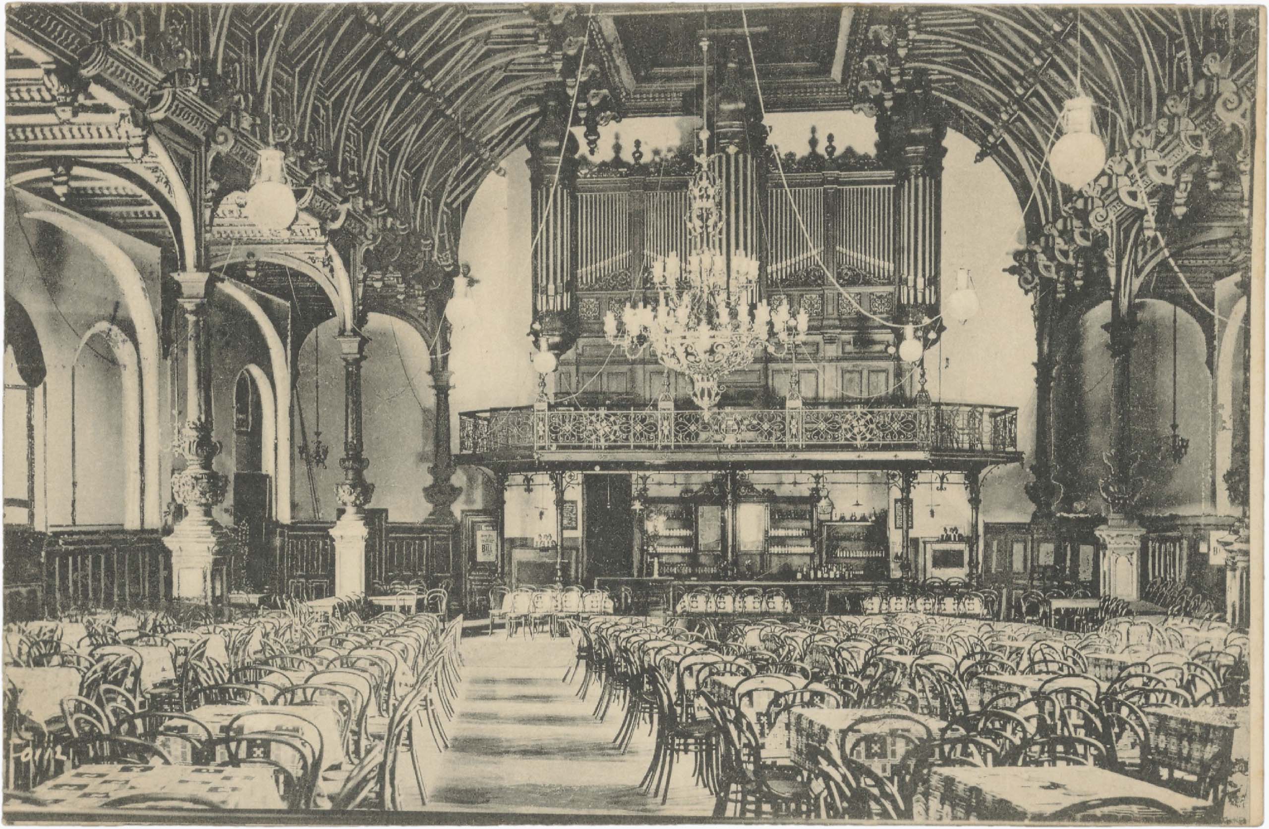 Innenansicht der Central-Festsäle, o.J., o.V., Sammlung: Peter Plewka / FHXB Friedrichshain-Kreuzberg Museum, 0090v. In den Central-Festsälen (Alte Jakobstraße 32) tagte der Bund für Menschenrecht. Außerdem wurden hier zahlreiche Urningbälle veranstaltet.